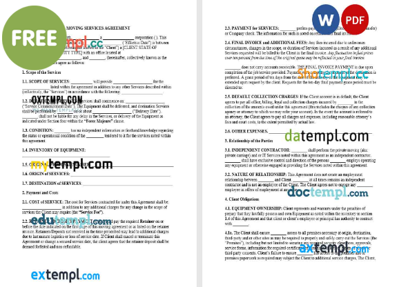 free moving services agreement template Word and PDF format
