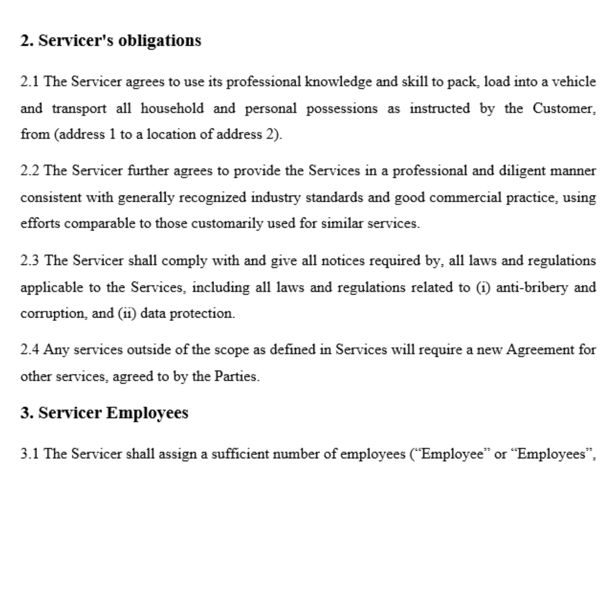 Moving Services Agreement Template