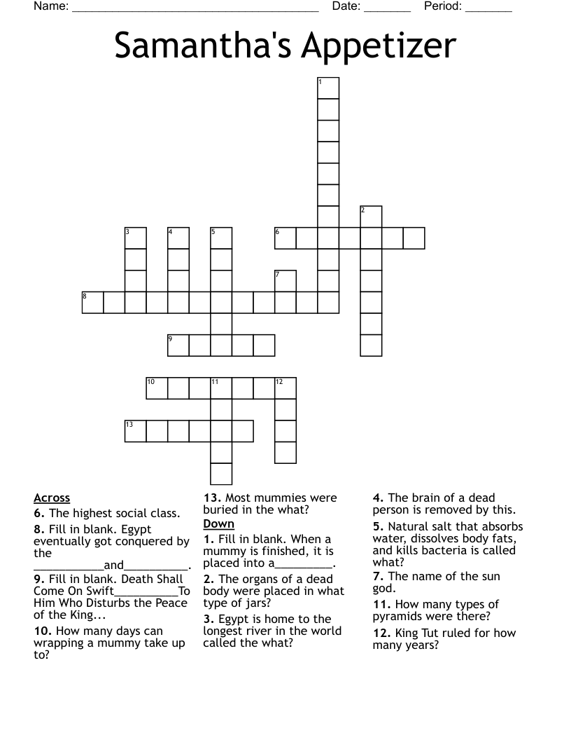 Unit 5 Appetizer Crossword Puzzle WordMint