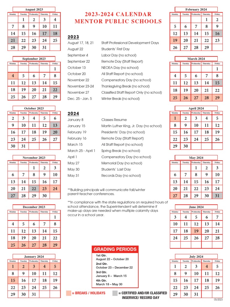 Updated MPS Academic Calendar for 2023 24 Released Milford Public Schools