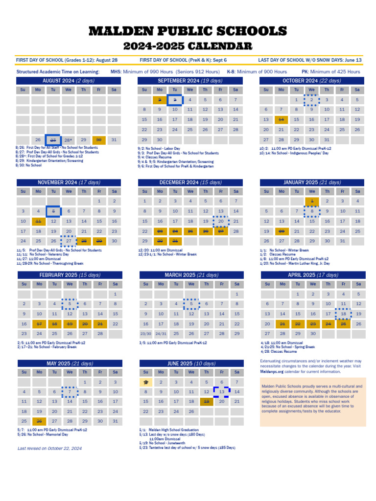 MPS Calendar SY 2024 25 FINAL Revised 10 22 PDF Observances Holidays