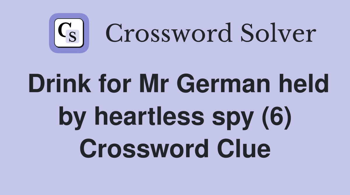 Drink for Mr German held by heartless spy (6) Crossword Clue Answers