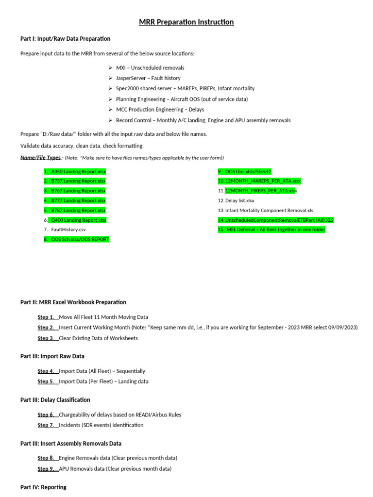 MRR Preparration Instruction PDF Microsoft Excel Data