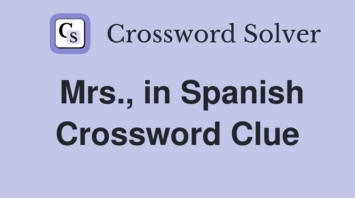 Mrs in Spanish Crossword Clue Answers Crossword Solver