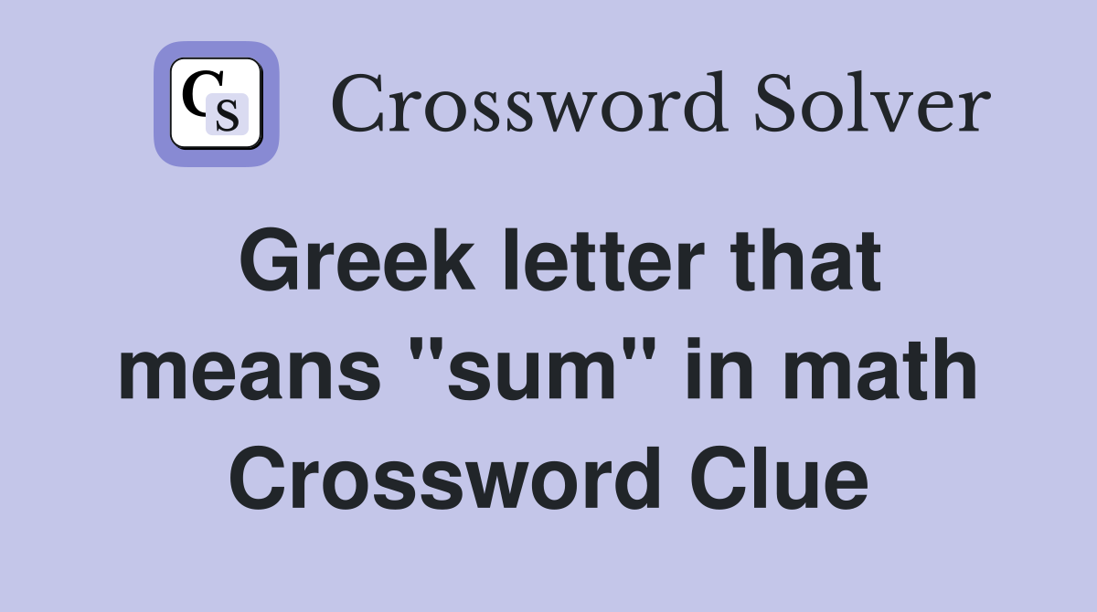 Greek letter that means quot sum quot in math Crossword Clue Answers