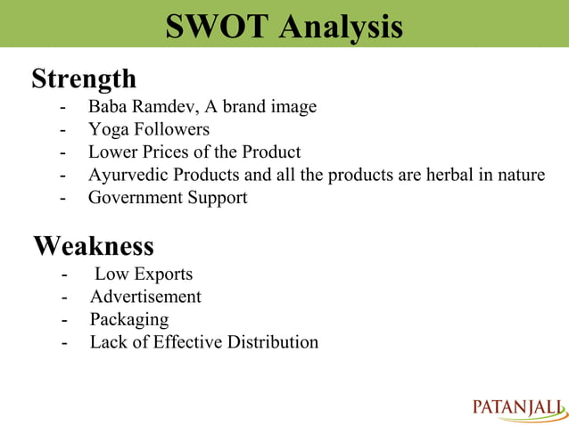SWOT of PATANJALI BY MSU STUDENTS PPT