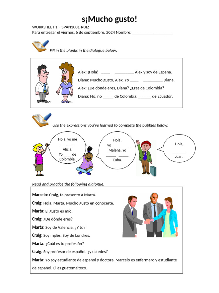 SPAN1001 Worksheet 1 Mucho Gusto September PDF