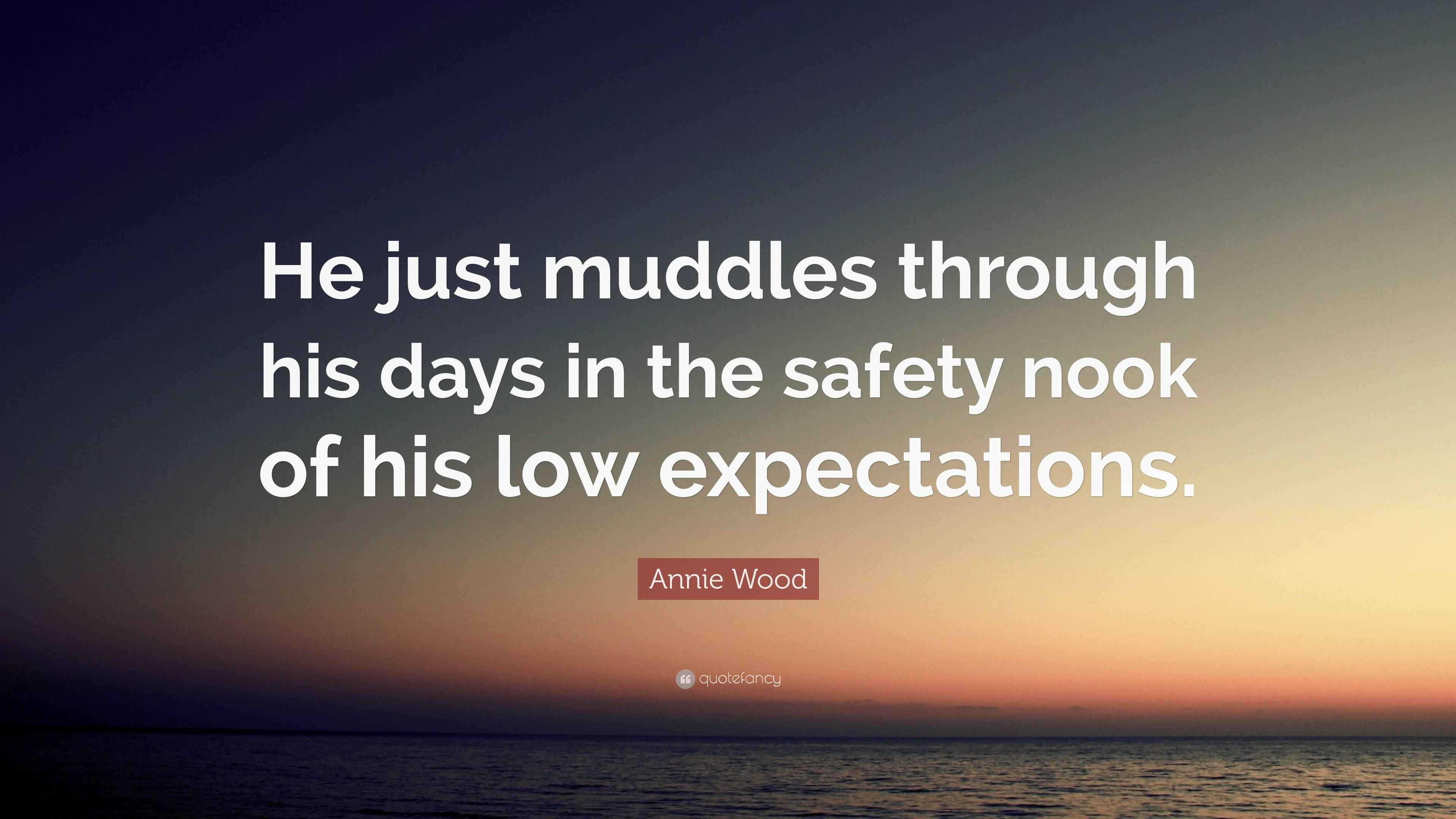 Annie Wood Quote: He just muddles through his days in the safety nook