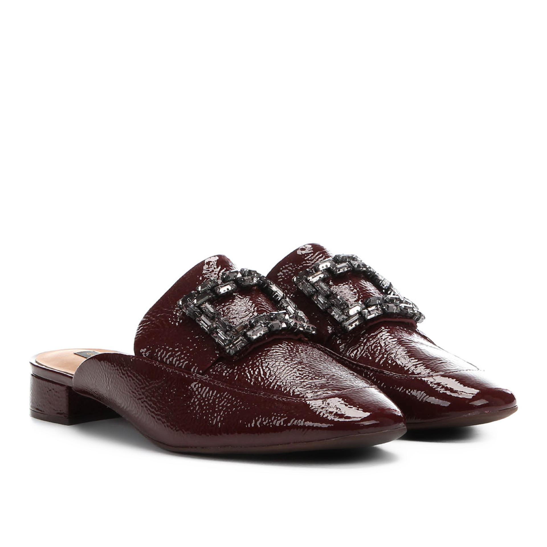 Mule Vermelho Bico Quadrado Couro Loja Online Usaflex