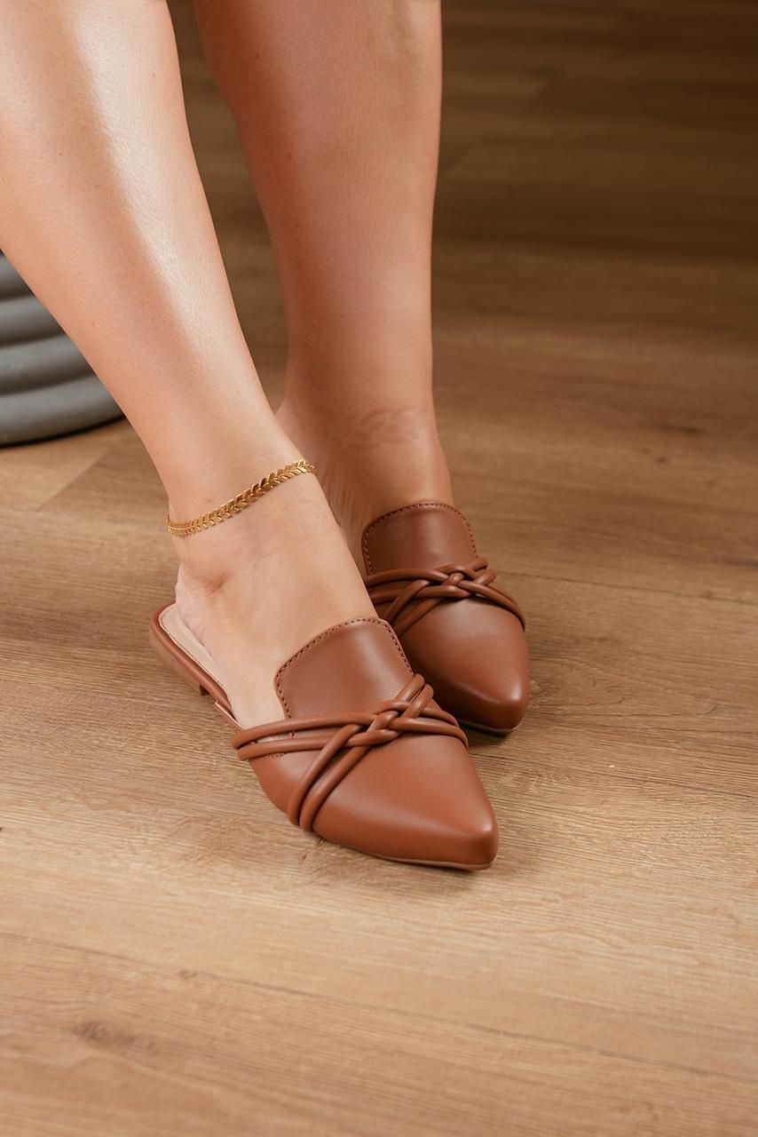 Mule Tiras Bico Fino 831 Caramelo Carolina Lins
