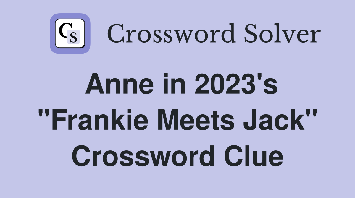 Anne in 2023 #39 s quot Frankie Meets Jack quot Crossword Clue Answers