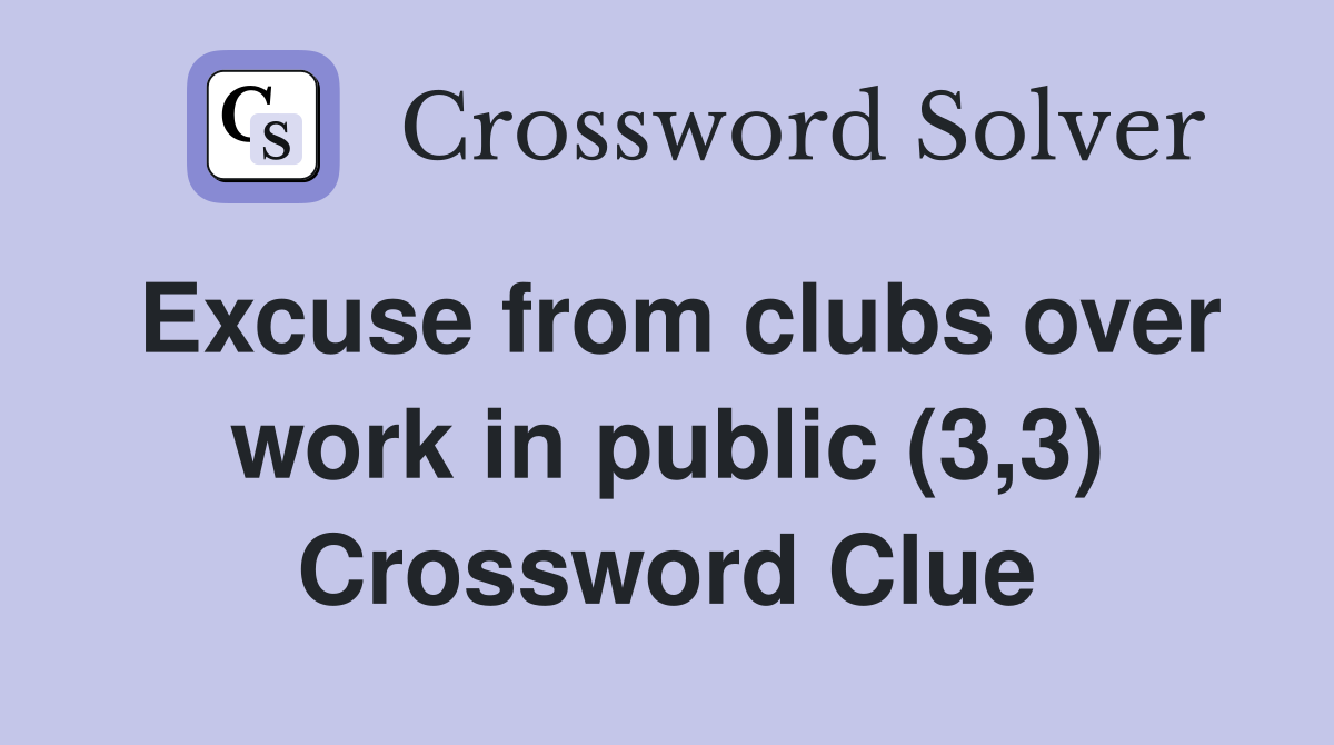 Excuse from clubs over work in public (3 3) Crossword Clue Answers