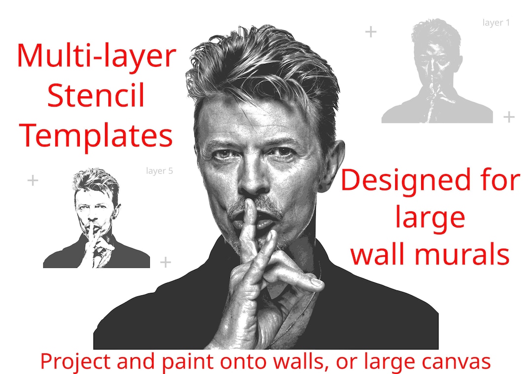Bowie Multi layer Stencil Templates Project and Paint Wall Murals