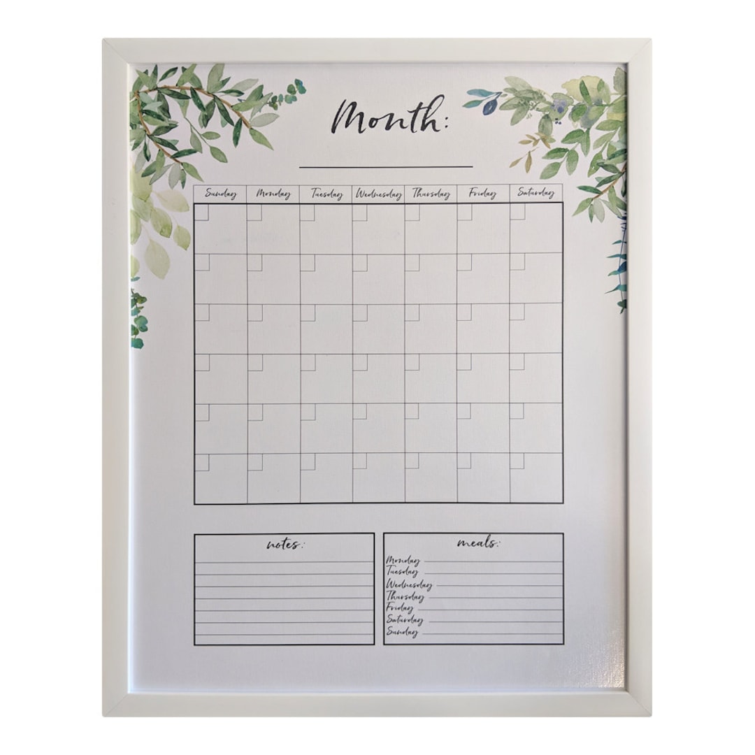 Framed Dry Erase Whiteboard Calendar for Wall Monthly Planner Etsy