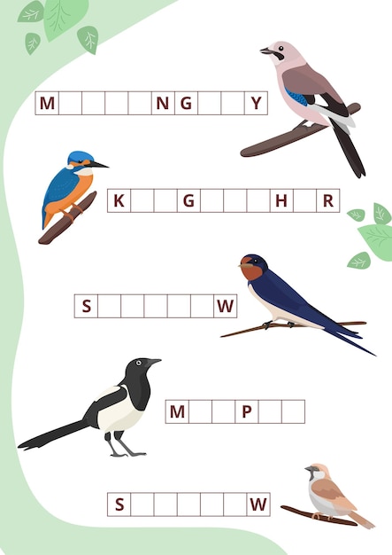 Vibrant Bird Silhouettes with Crossword Style Labels Jiffy Designs