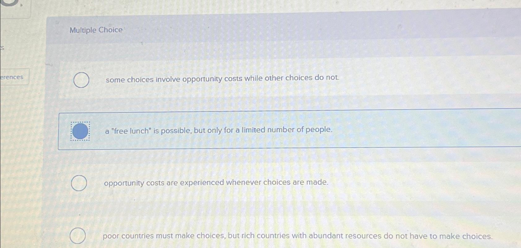 Solved Multiple Choicesome choices involve opportunity costs Chegg com