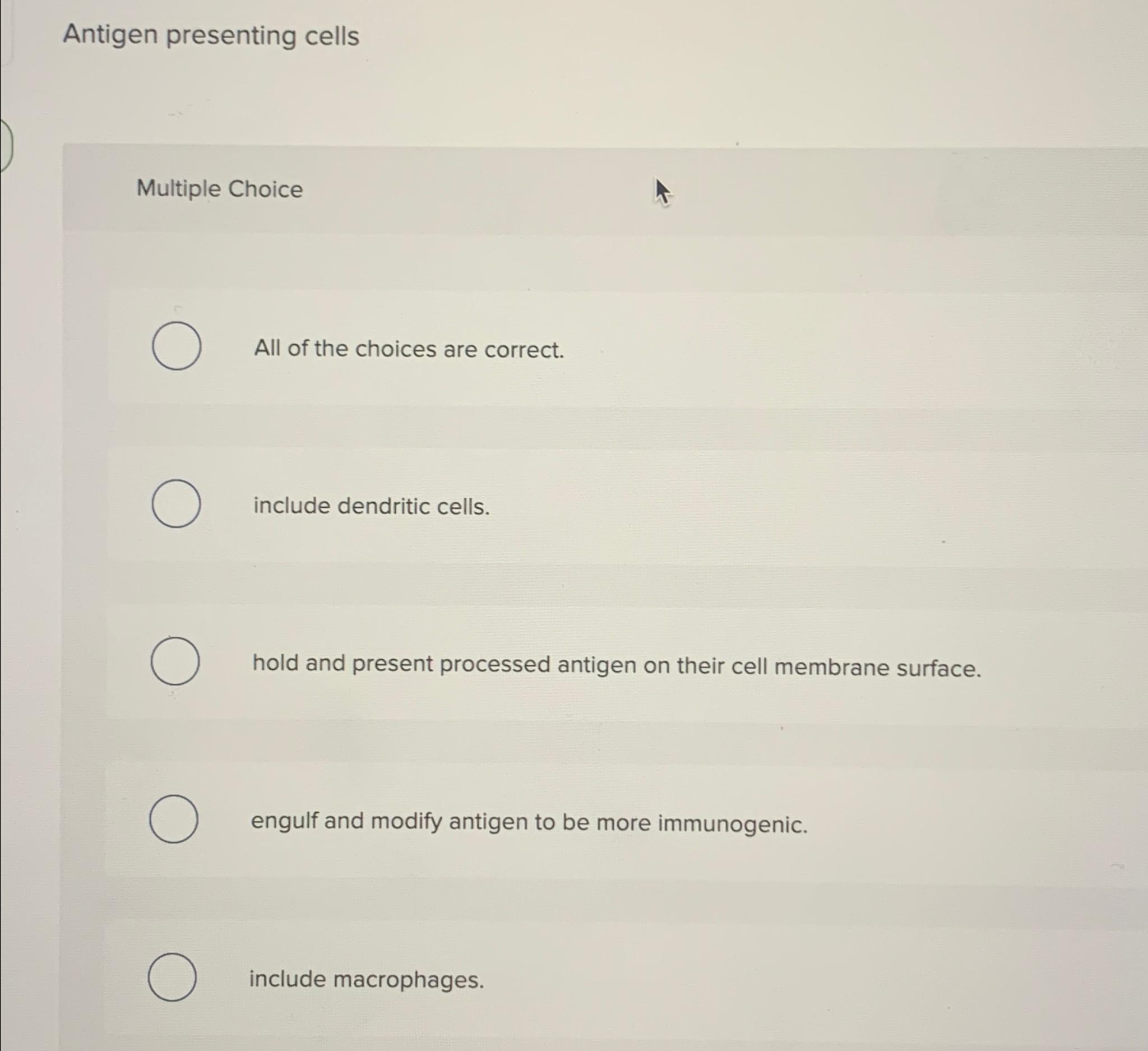 Solved Antigen presenting cellsMultiple ChoiceAll of the Chegg com