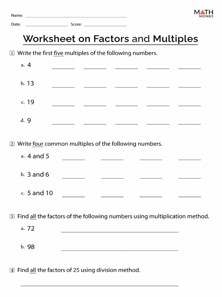 Worksheet Class 4 Factors and Multiples PDF Worksheets Library
