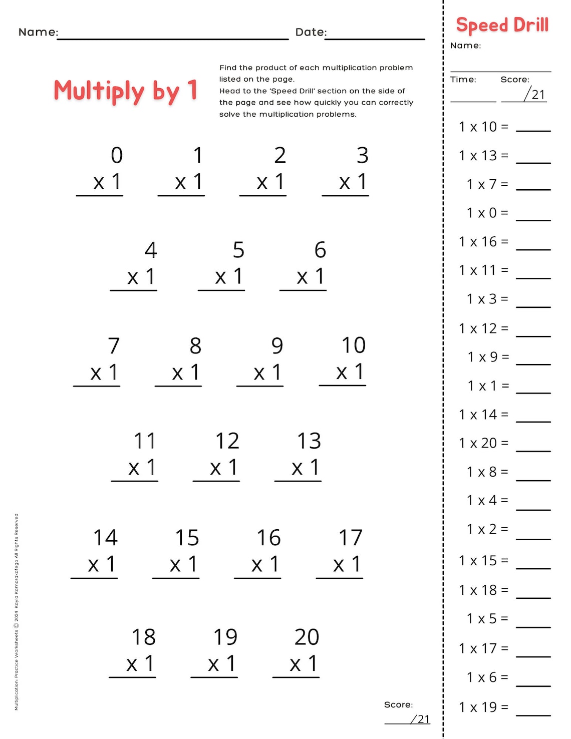 Multiplication Practice Worksheets Digital PDF Download Grade 3 Grade 4