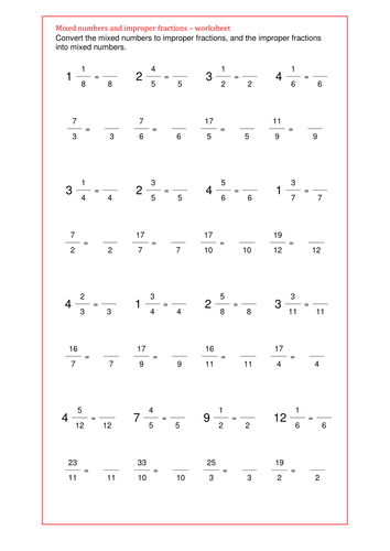 Redistributing Mixed Number Improper Fractions Worksheet With Answer