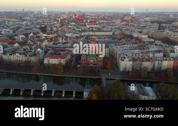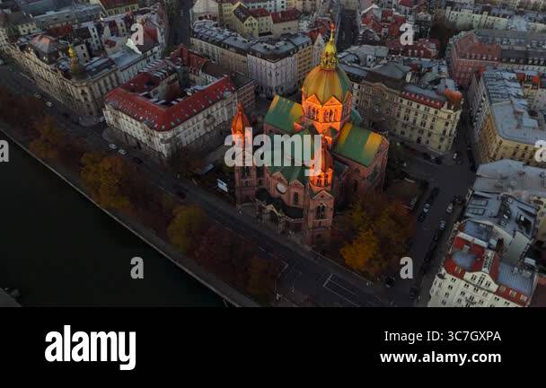 Church of St Lukas St Lukes on banks of river Isar called