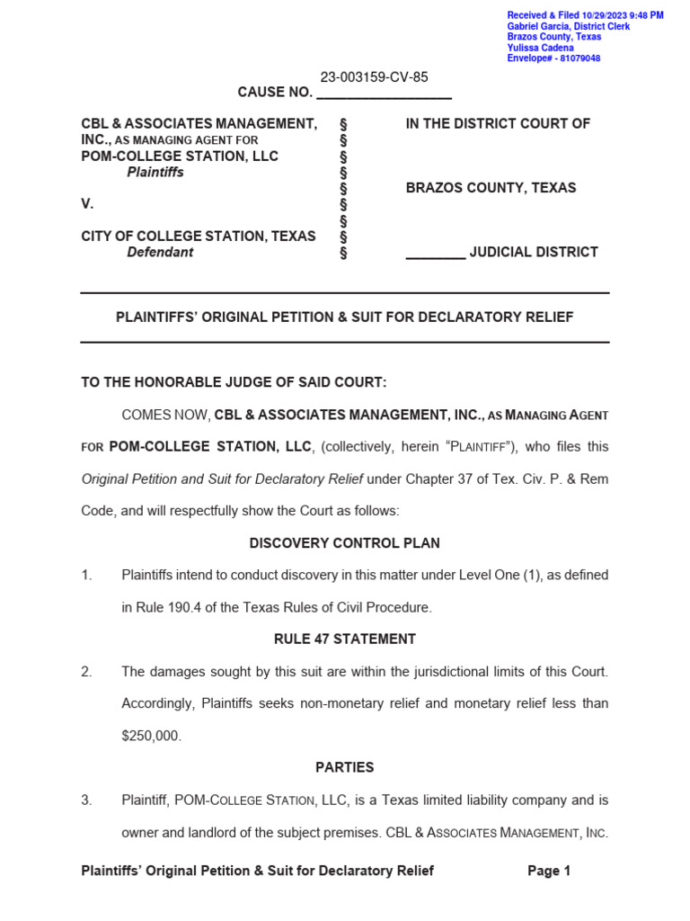 Plaintiffs Original Petition Suit For Declaratory Relief PDF Legal