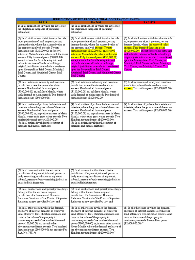 Regional Trial Courts Civil Jurisdiction PDF Political Law