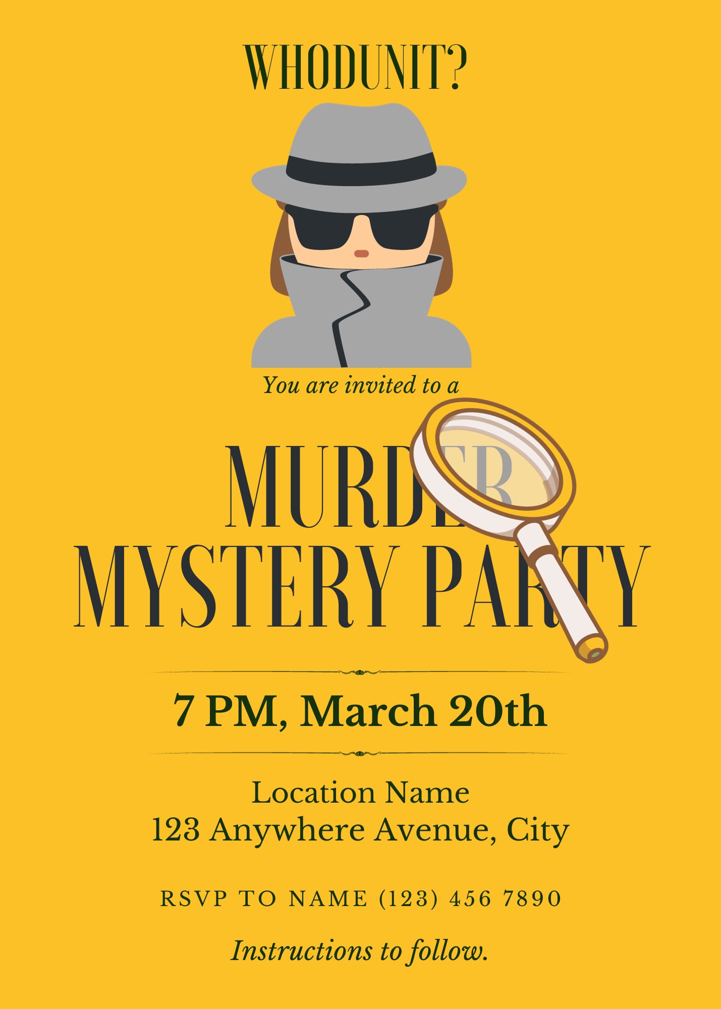 Free Murder Mystery Dinner Invitation Template to Edit Online