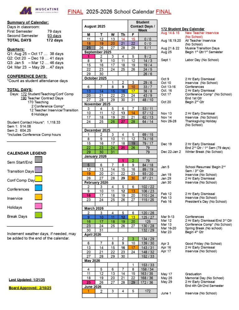 Muscatine Community School IA Calendar 25 26 Revised pdf EduCounty