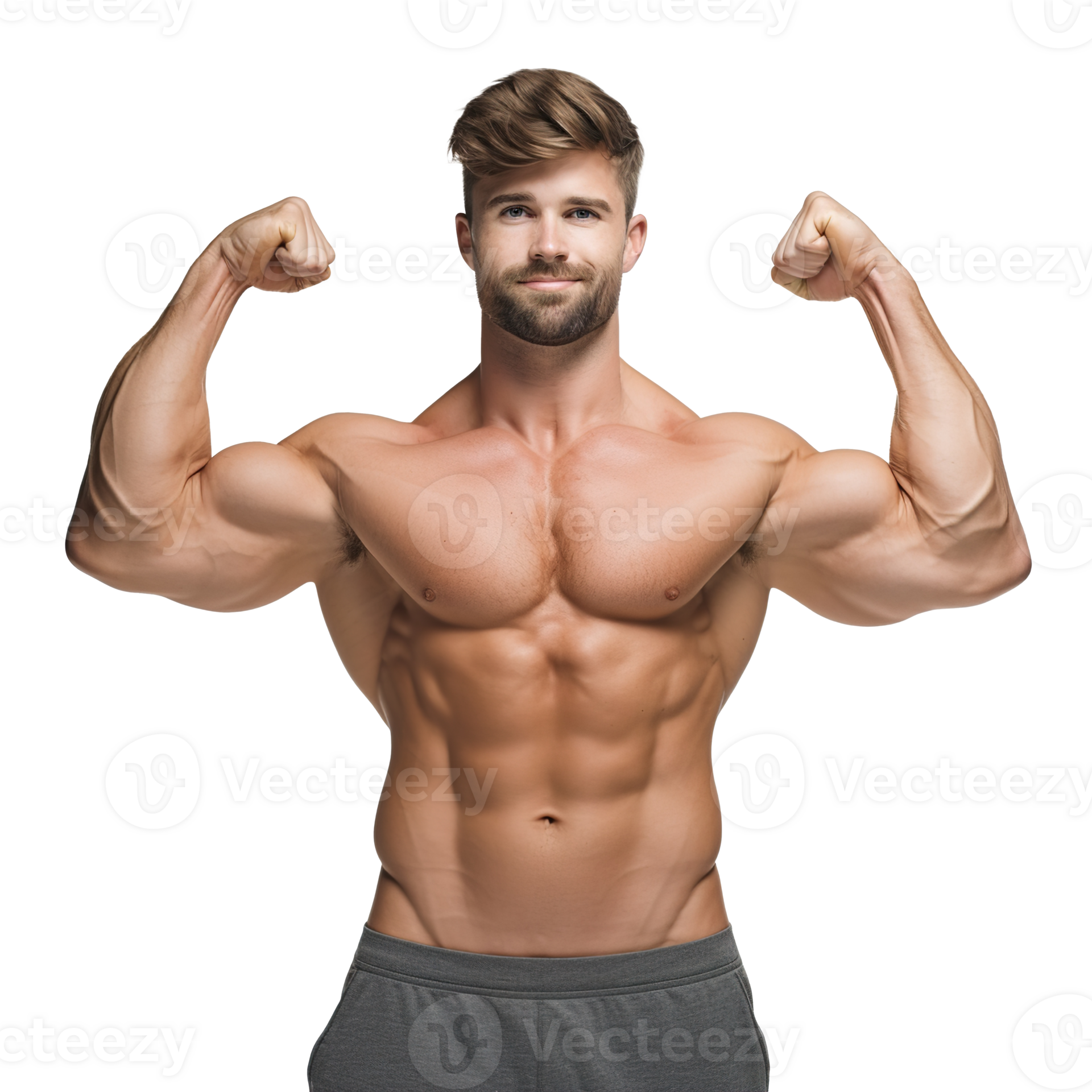 Smiling Male Athlete Flexing Muscle Sport Empowered and Strong