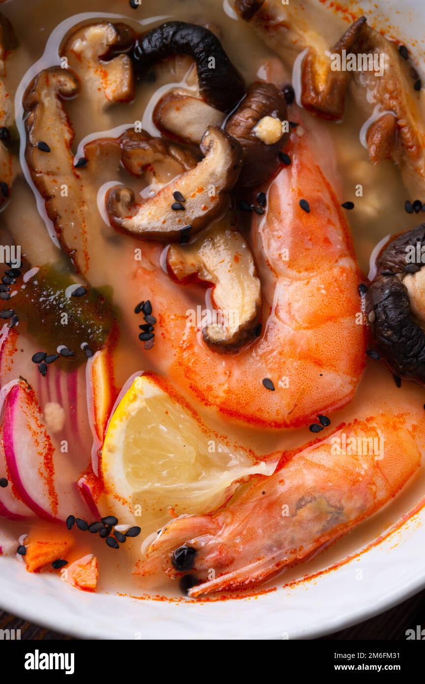 Miso soup with mussels shrimps shiitake mushrooms and vegatables