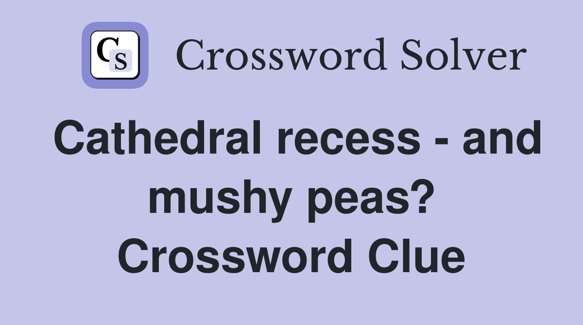 Cathedral recess and mushy peas? Crossword Clue Answers Crossword