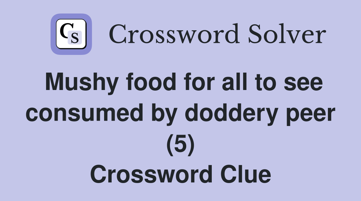 Mushy food for all to see consumed by doddery peer (5) Crossword Clue