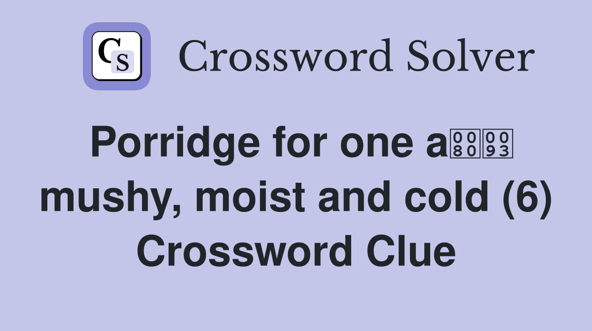 Porridge for one a mushy moist and cold (6) Crossword Clue Answers