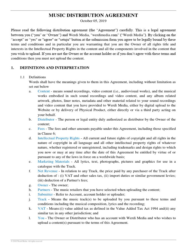 MUSIC DISTRIBUTION AGREEMENT Werdi Media 202104 PDF Indemnity Tort