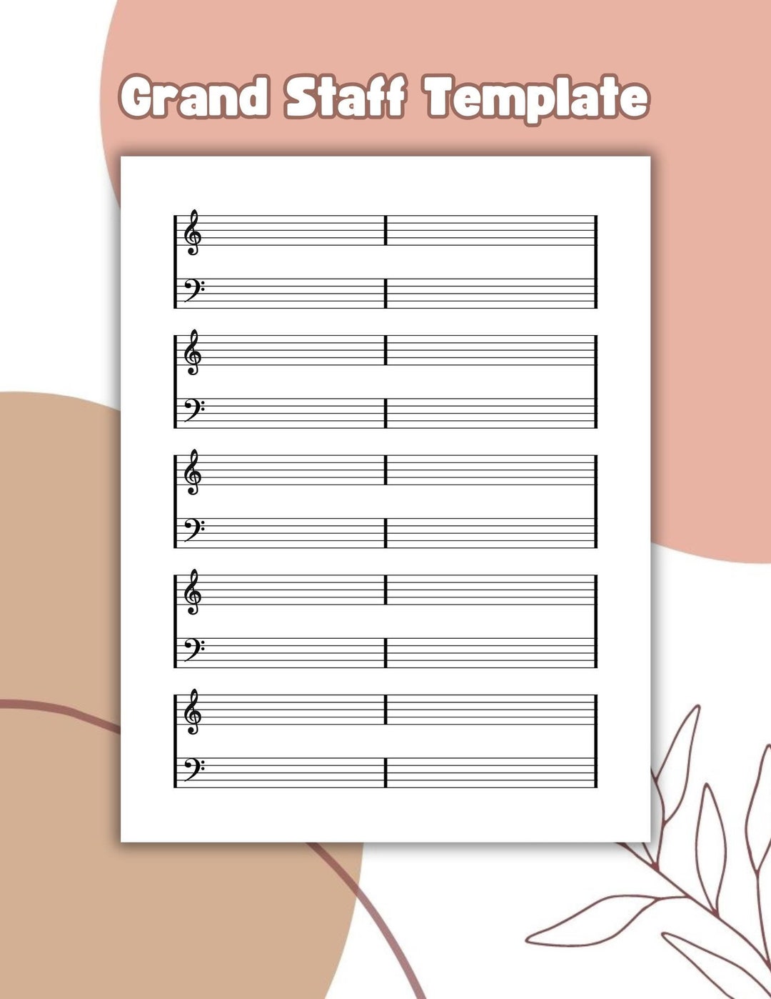 Printable Staff Paper Blank Sheet Music Treble Clef/ Bass Clef Etsy
