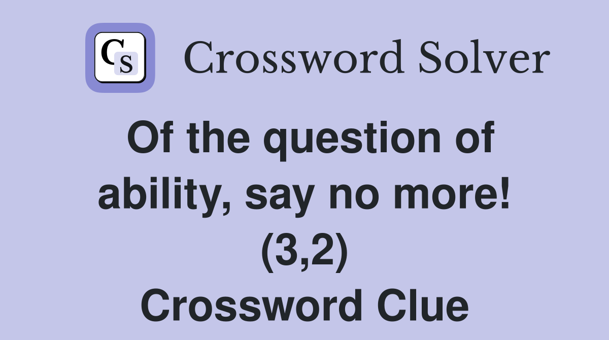 Of the question of ability say no more (3 2) Crossword Clue Answers