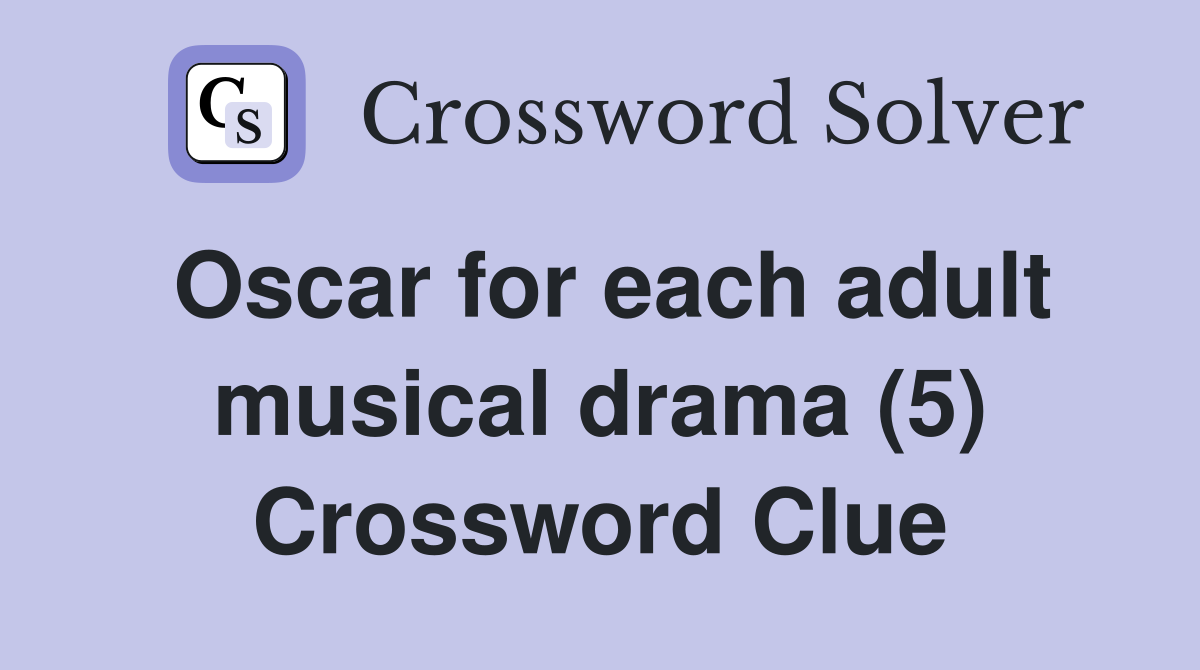 Oscar for eachmusical drama (5) Crossword Clue Answers