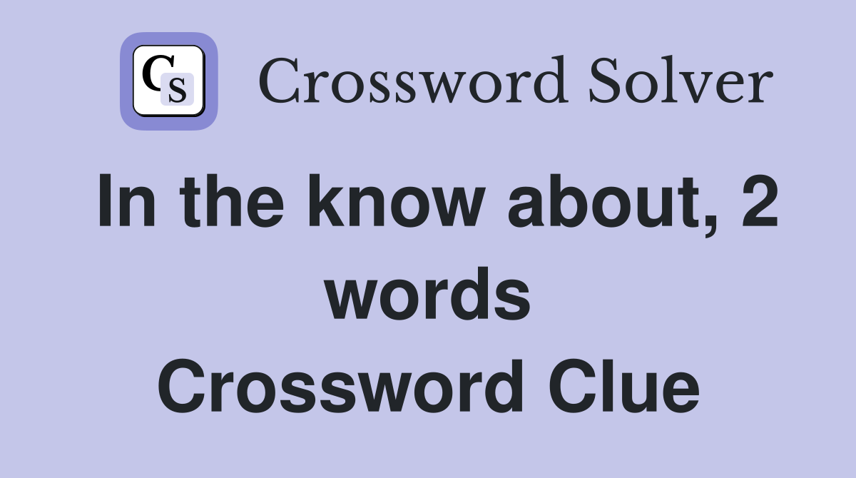 In the know about 2 words Crossword Clue Answers Crossword Solver