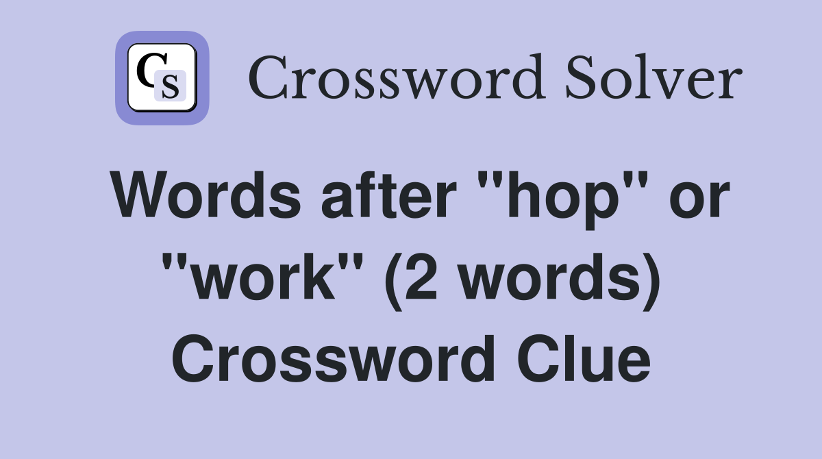 Words after quot hop quot or quot work quot (2 words) Crossword Clue Answers