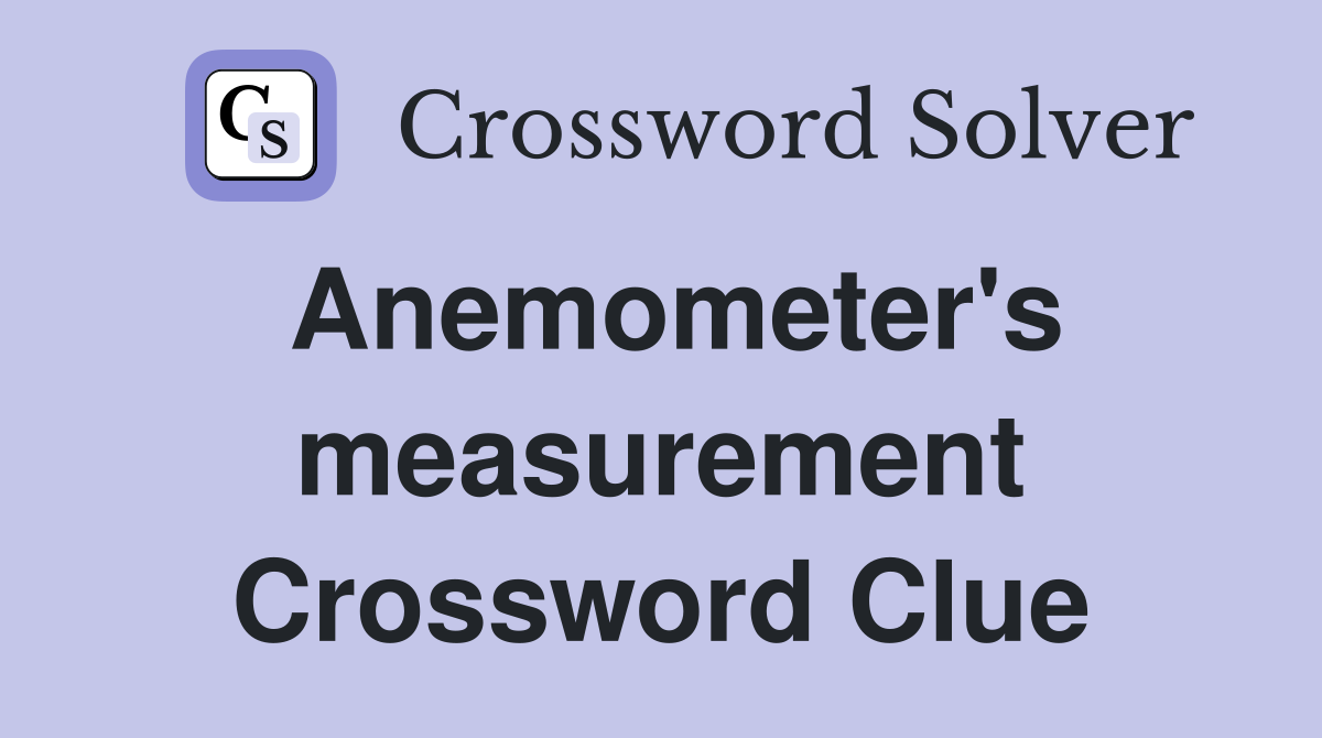 Anemometer #39 s measurement Crossword Clue Answers Crossword Solver