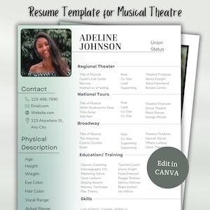 Musical Theatre Resume Auditions Editable in Canva CV Professional