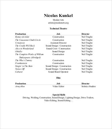 FREE 9 Sample Theatre Resume Templates in MS Word PDF