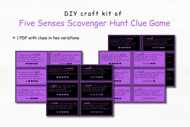 5 Senses Gift TagsScavenger Hunt Clue Game for Couples