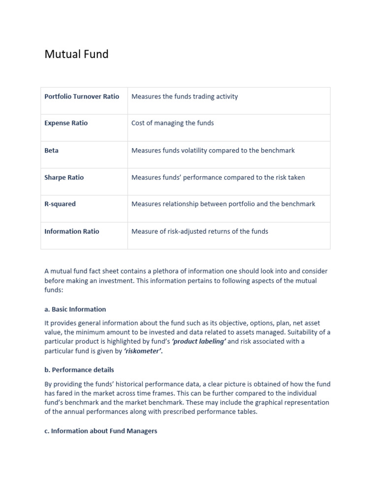 Mutual Fund Fact Sheet Analysis Key Ratios Attributes