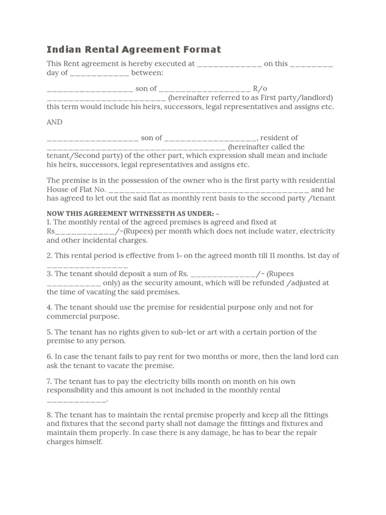 Indian Rental Agreement Format: Now This Agreement Witnesseth As Under