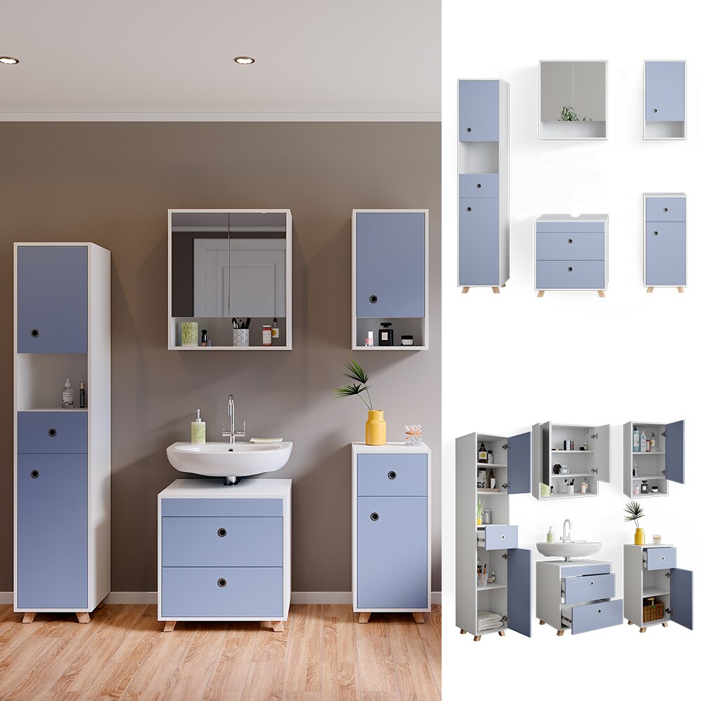 Vicco Badmöbel Set Retro Unterschrank Hochschrank Midischrank