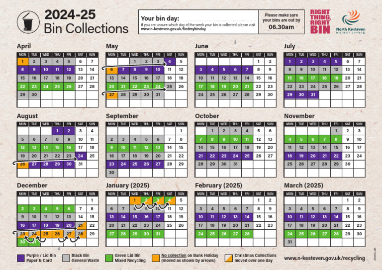 Bin Collections 2024 2025 Year Calendar Planner PDF Waste