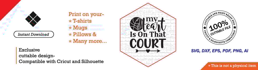 My Heart Is On That Court SVG DXF Cut File Basketball SVG DXF Cut Fil
