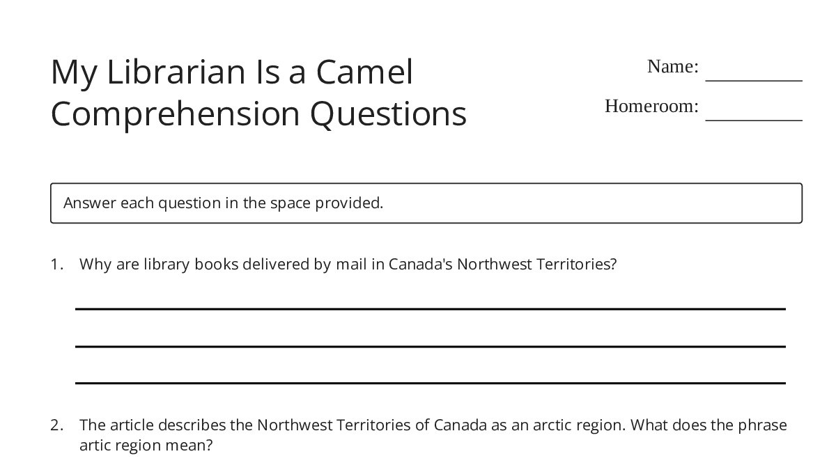My Librarian Is a Camel Comprehension Questions My Worksheet Maker